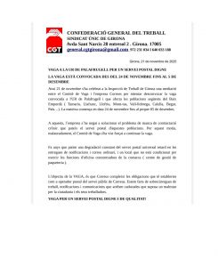 VAGA DE CORREUS DES DEL 24 DE NOVEMBRE FINS EL 5 DE DESEMBRE DE 2025